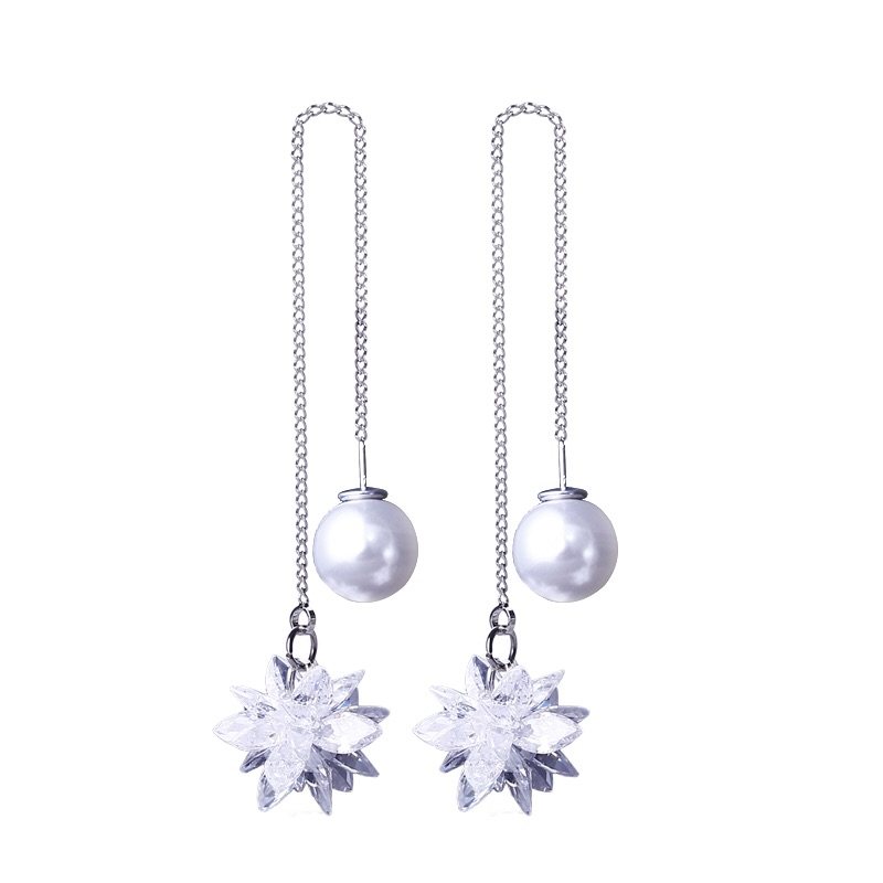 天天特价s925纯银水晶冰花耳环韩国气质女耳坠长款百搭雪花耳线 - 曼休妮时尚饰品