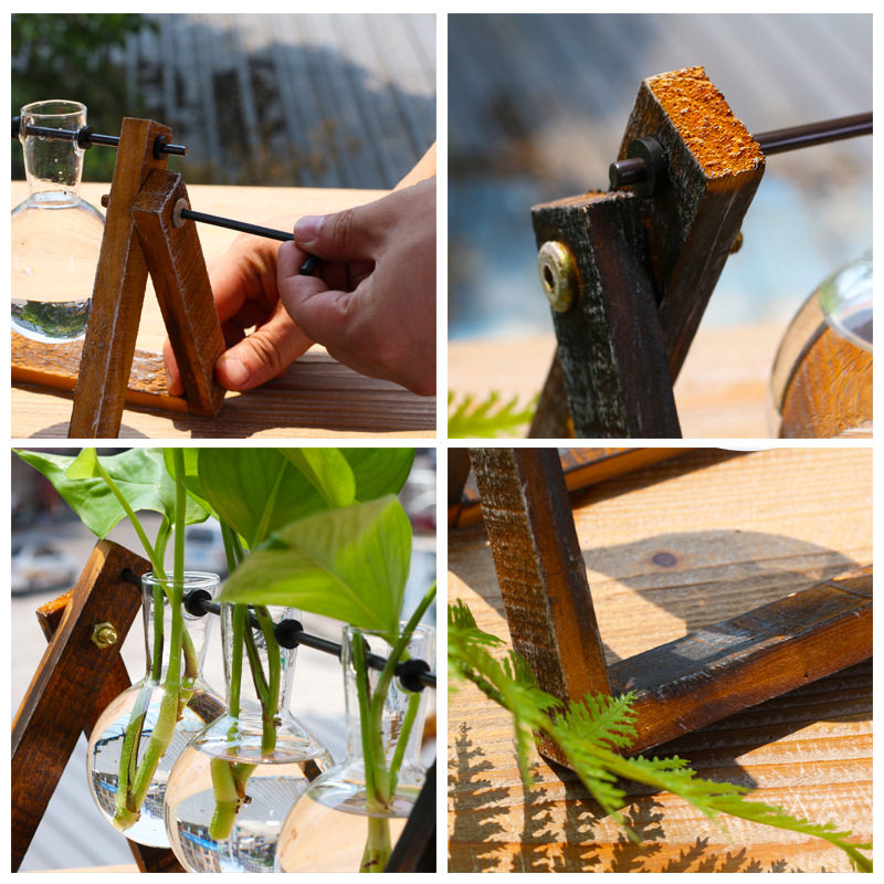 复古风木质铁艺家居咖啡店桌面装饰品玻璃小花瓶水培绿萝容器摆件 - 无怀居商城的小店5