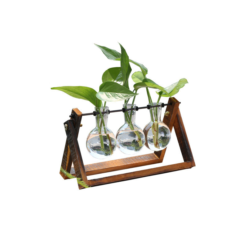 复古风木质铁艺家居咖啡店桌面装饰品玻璃小花瓶水培绿萝容器摆件