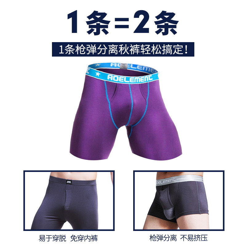 男士秋裤枪弹修身单件分离青年莫代尔紧身保暖裤线裤打底裤薄冬季 - 奥元素内衣店