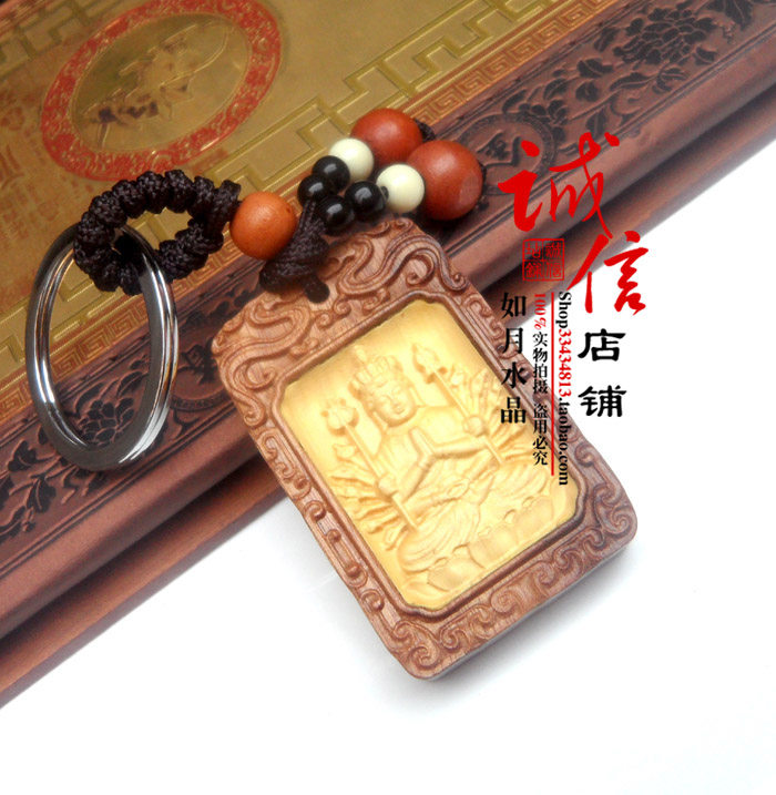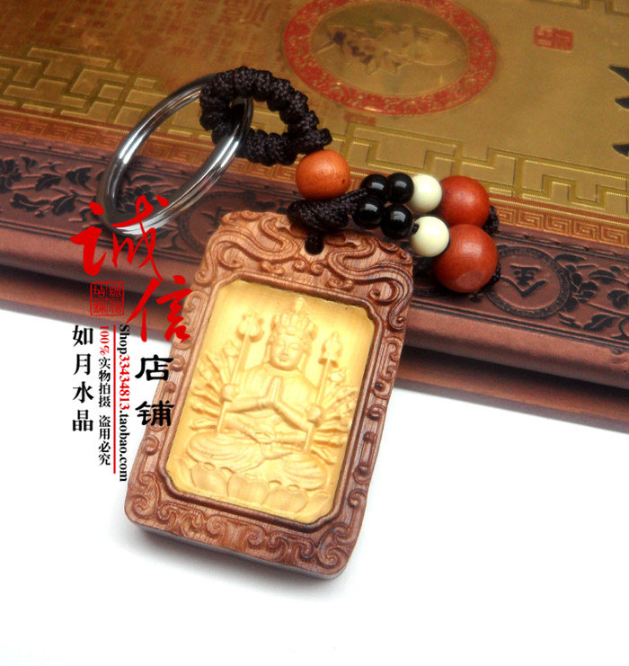 2026年属鼠吉祥物千手观音守护神钥匙扣天然桃木招财聚财285 - 如月水晶