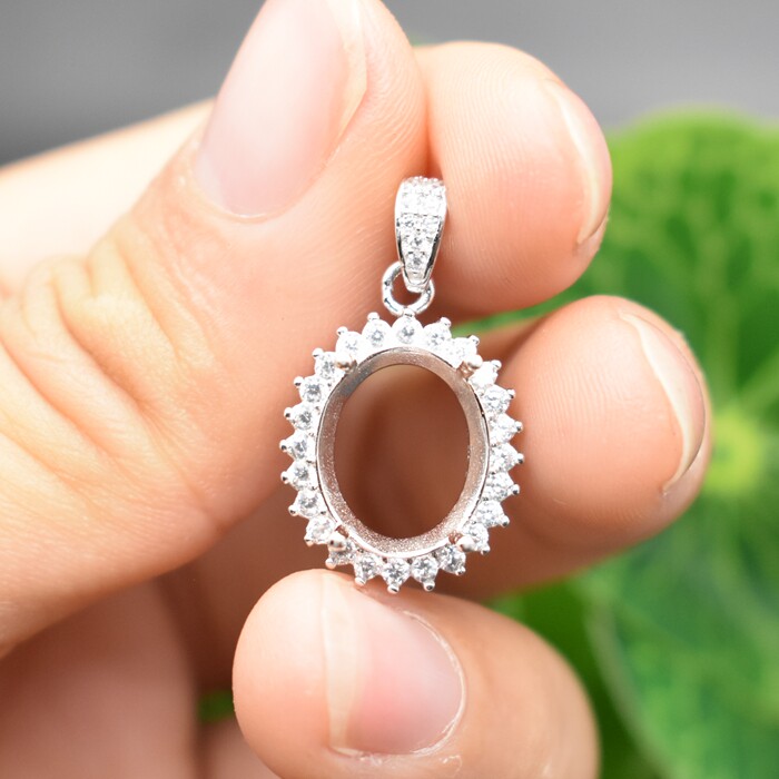 镶钻椭圆形纯银吊坠空托925银镀24k白金项链银托韩版蛋形链子坠托 - 爱未央珠宝Facets Gems