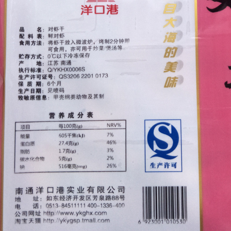 您的位置:女淘日记  >  美食  >  南通如东特产洋口港牌海对虾干烤虾400克/袋南通海鲜特产