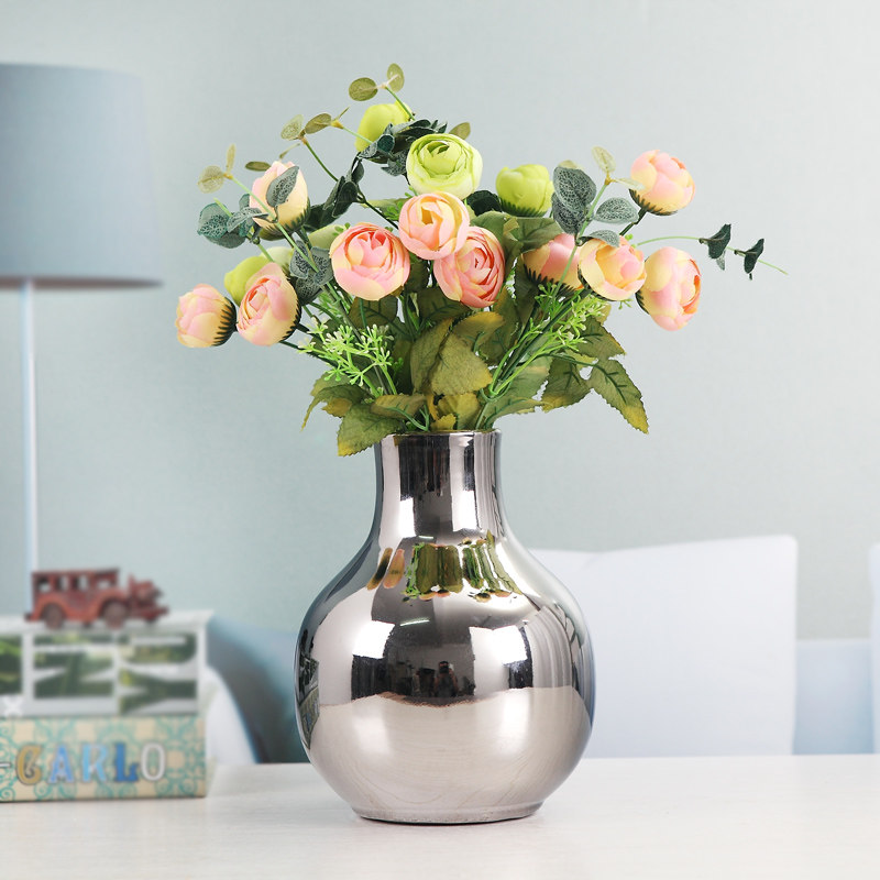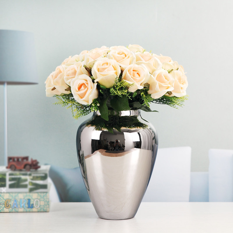 电视柜餐桌客厅装饰品摆设高档家居软装工艺术品银色花瓶器含花 - 苏州园林阁