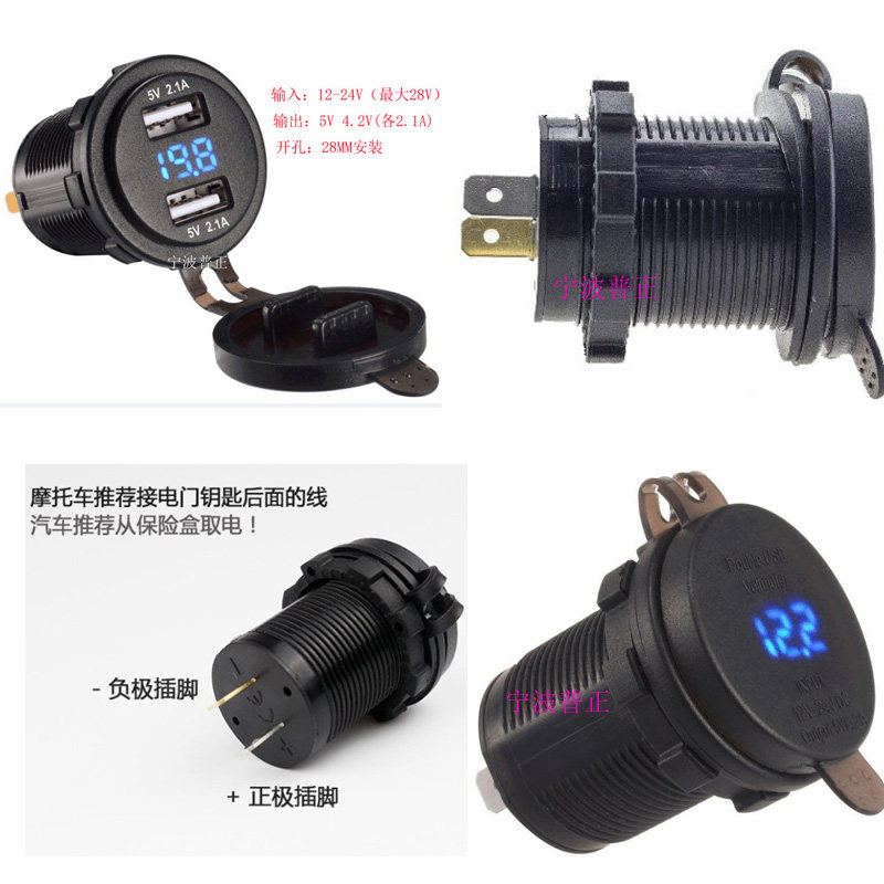 汽车面板式USB车载手机充电器带电压表12V24V转5V记录仪车充 - 宁波普正