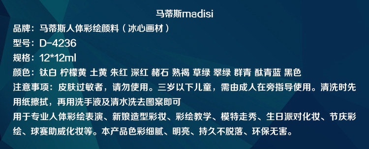 您的位置:女淘日记  >  母婴  >  马蒂斯戏剧油彩戏曲戏剧京剧脸谱画脸身彩化妆用品人体彩绘颜料