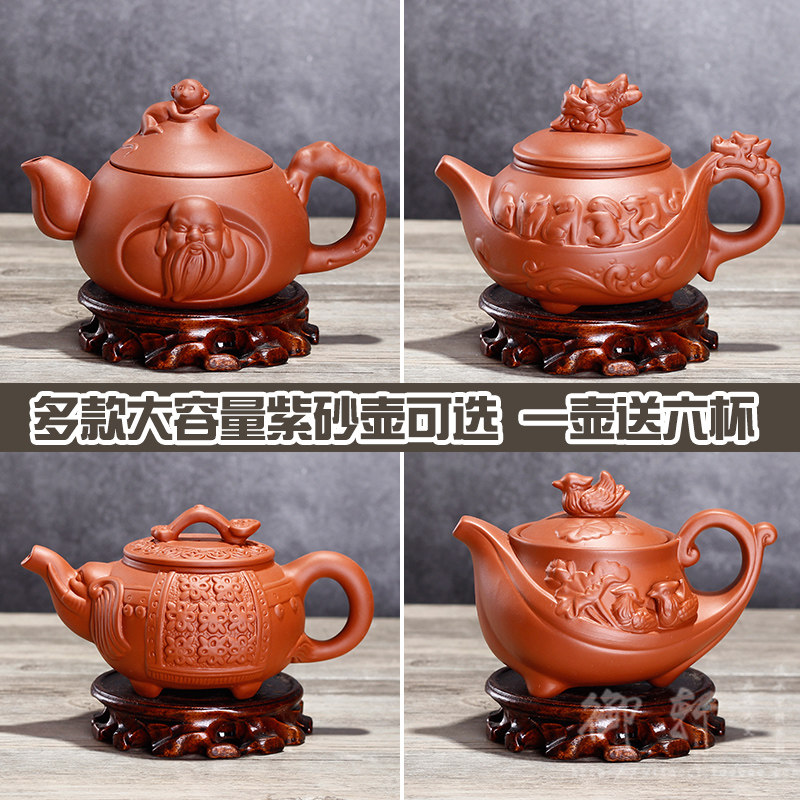 宜兴正品全手工紫砂壶茶具朱泥泡茶壶北方大容量大号花茶壶陶瓷壶 - 御轩陶瓷