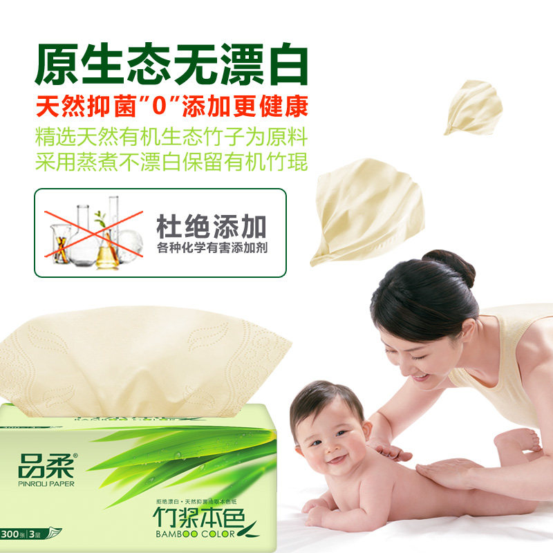 天然原浆实惠家用整箱竹浆竹纤维本色原色抽纸家用卫生纸餐巾纸巾 - 品柔纸品店
