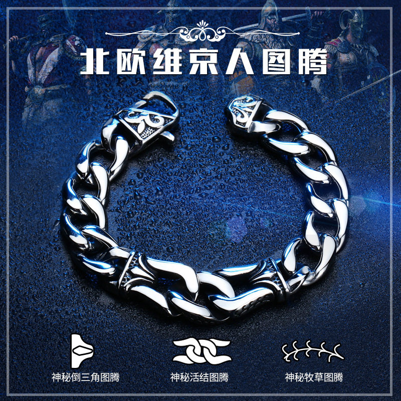 维京人钛钢手链男 韩版潮个性霸气 欧美复古男士手链学生潮人手饰 - 神秘饰界
