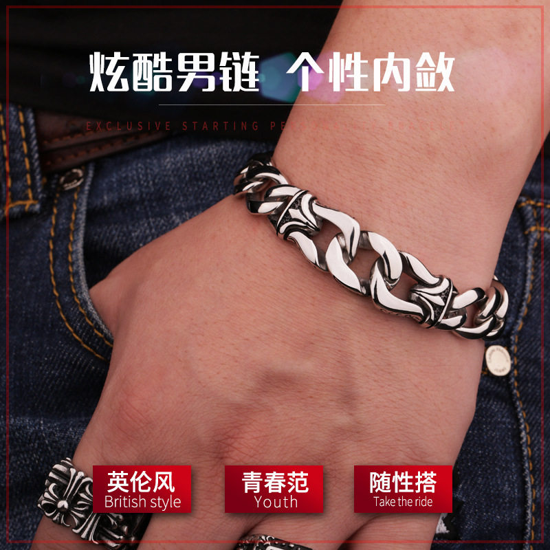 维京人钛钢手链男 韩版潮个性霸气 欧美复古男士手链学生潮人手饰