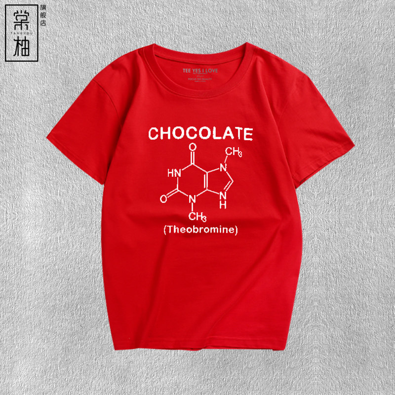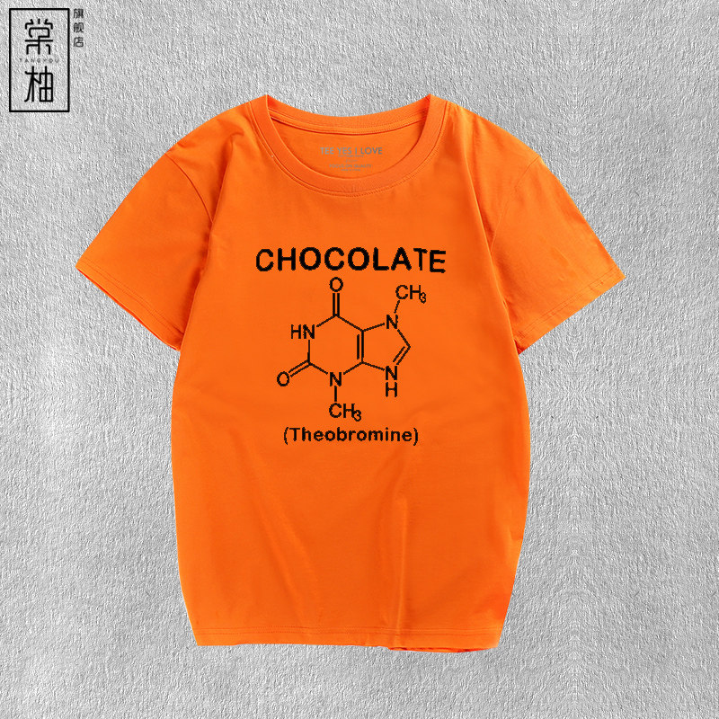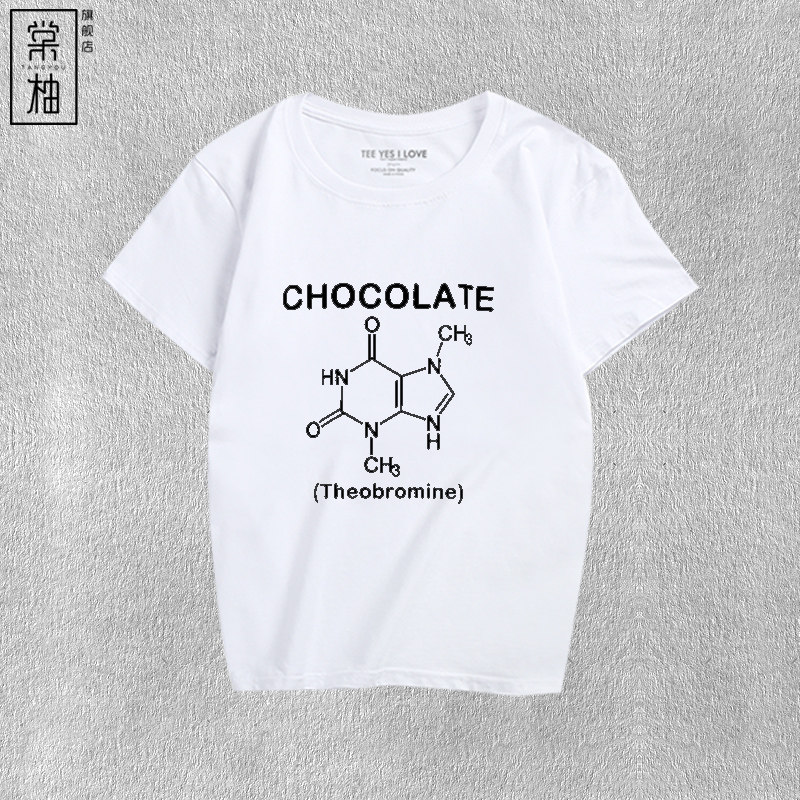 巧克力化学分子式男女纯棉T恤短袖简约休闲夏半袖衣服学生体恤 - 棠柚旗舰店
