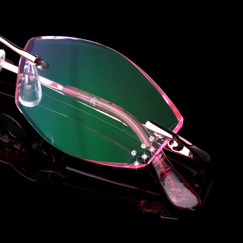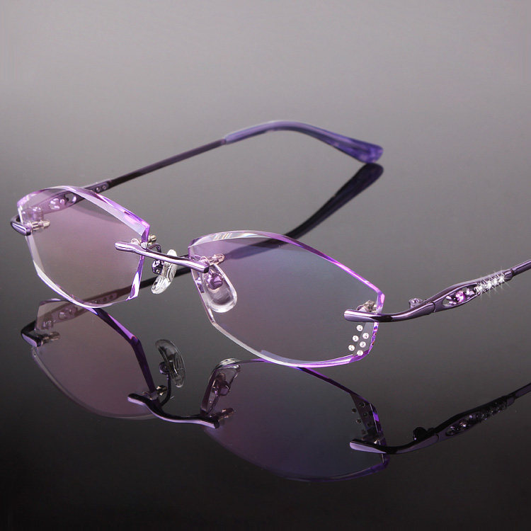 韩国钻石切边眼镜无框镶钻眼镜近视老花女款 镶钻切边定制 超韧 - 法思特眼镜企业店