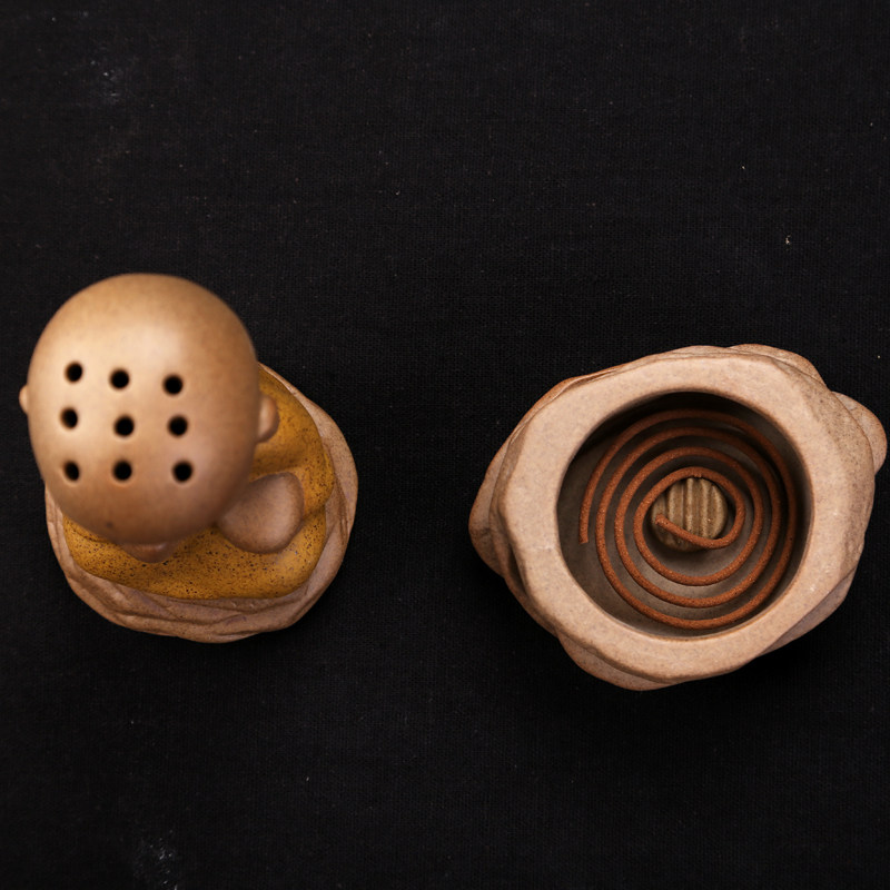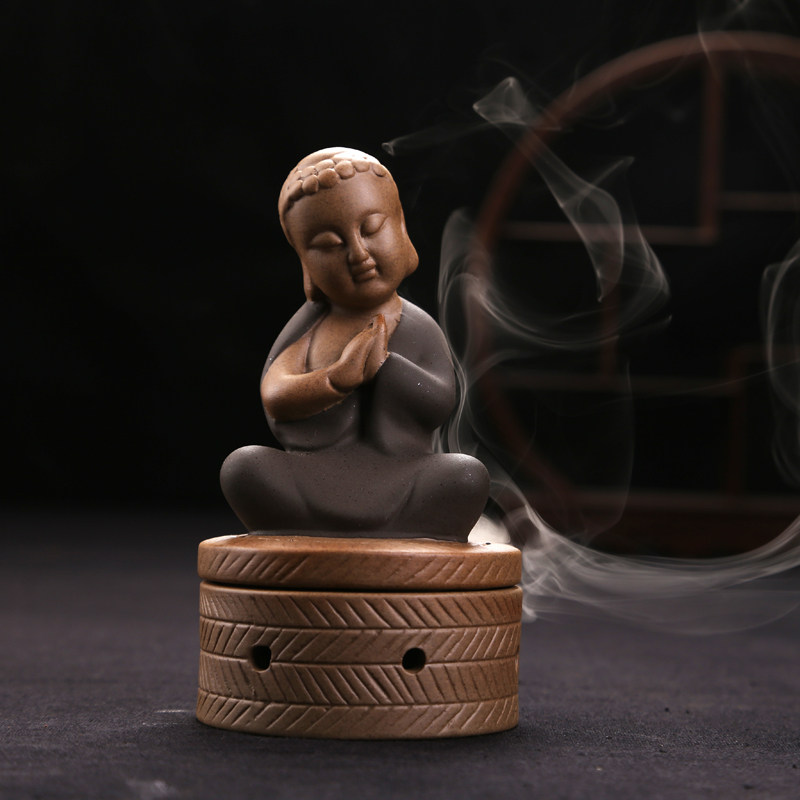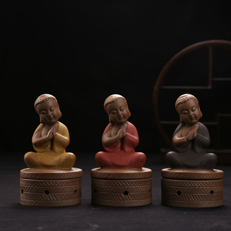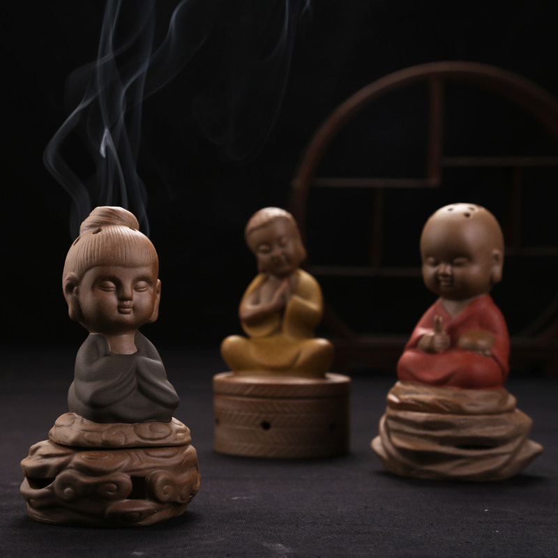 新款许愿小僧彩砂陶陶瓷复古原陶环香锥香倒流香香炉薰香器 - 泰泰祺觇店