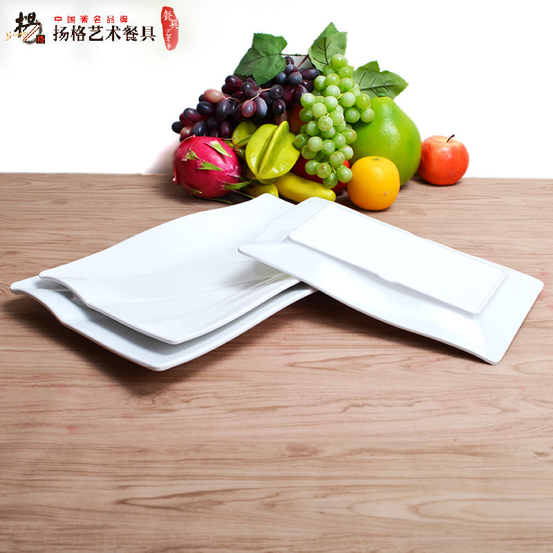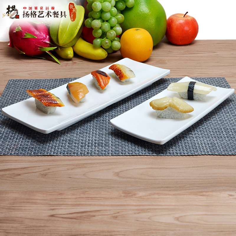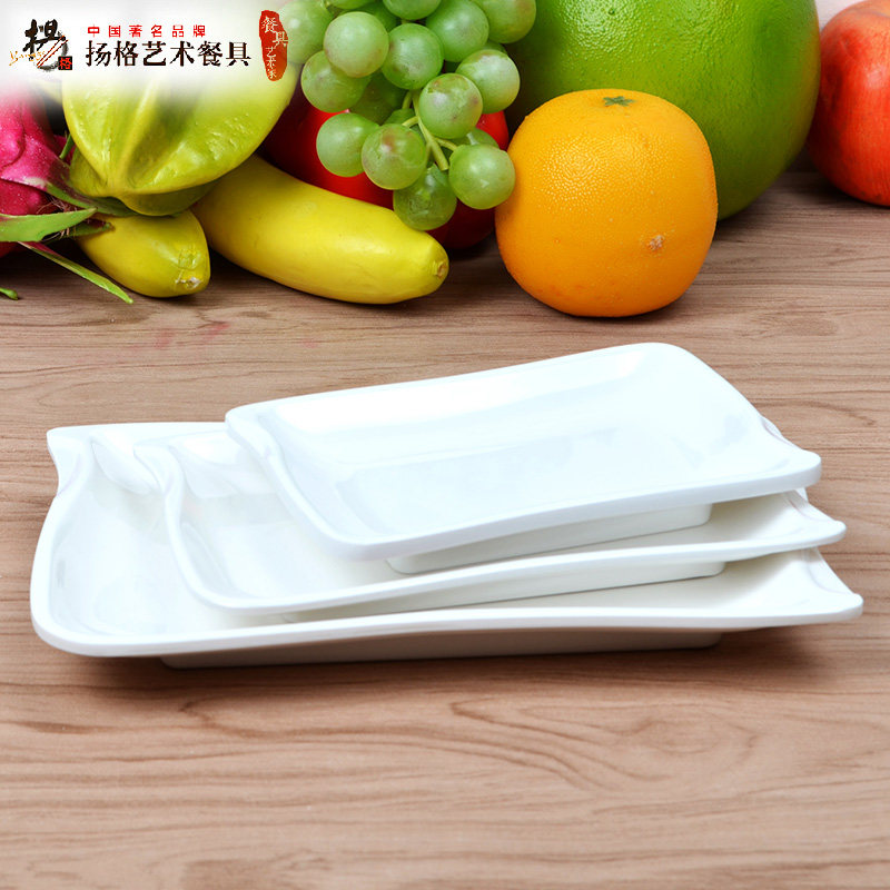 高档餐盘西餐盘仿瓷创意菜盘密胺塑料盘平盘浅盘白色长方寿司盘子 - 美尔达仿瓷餐具