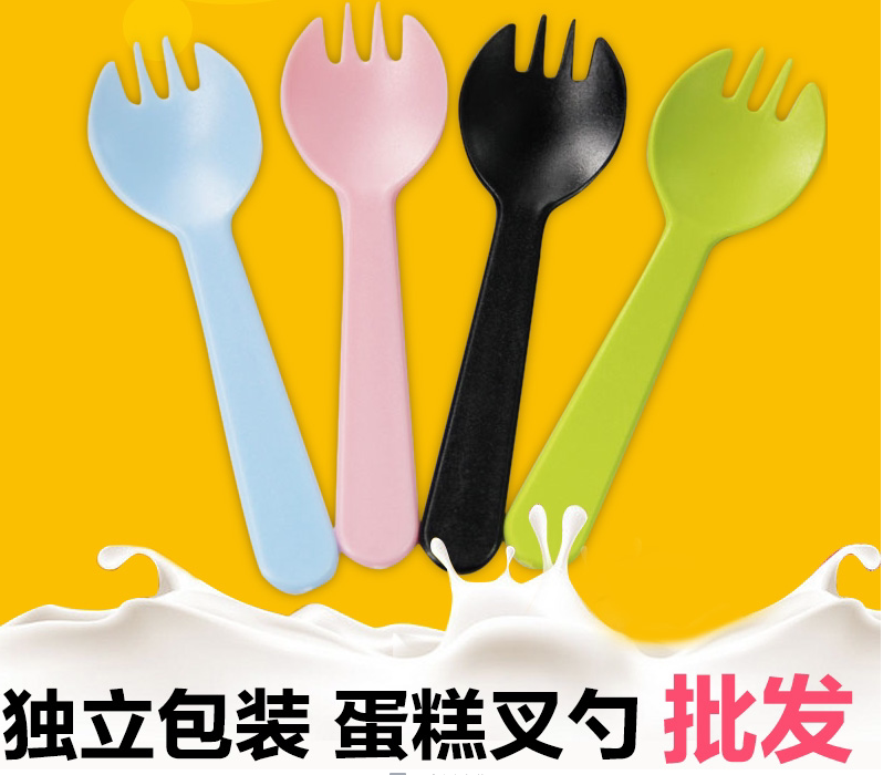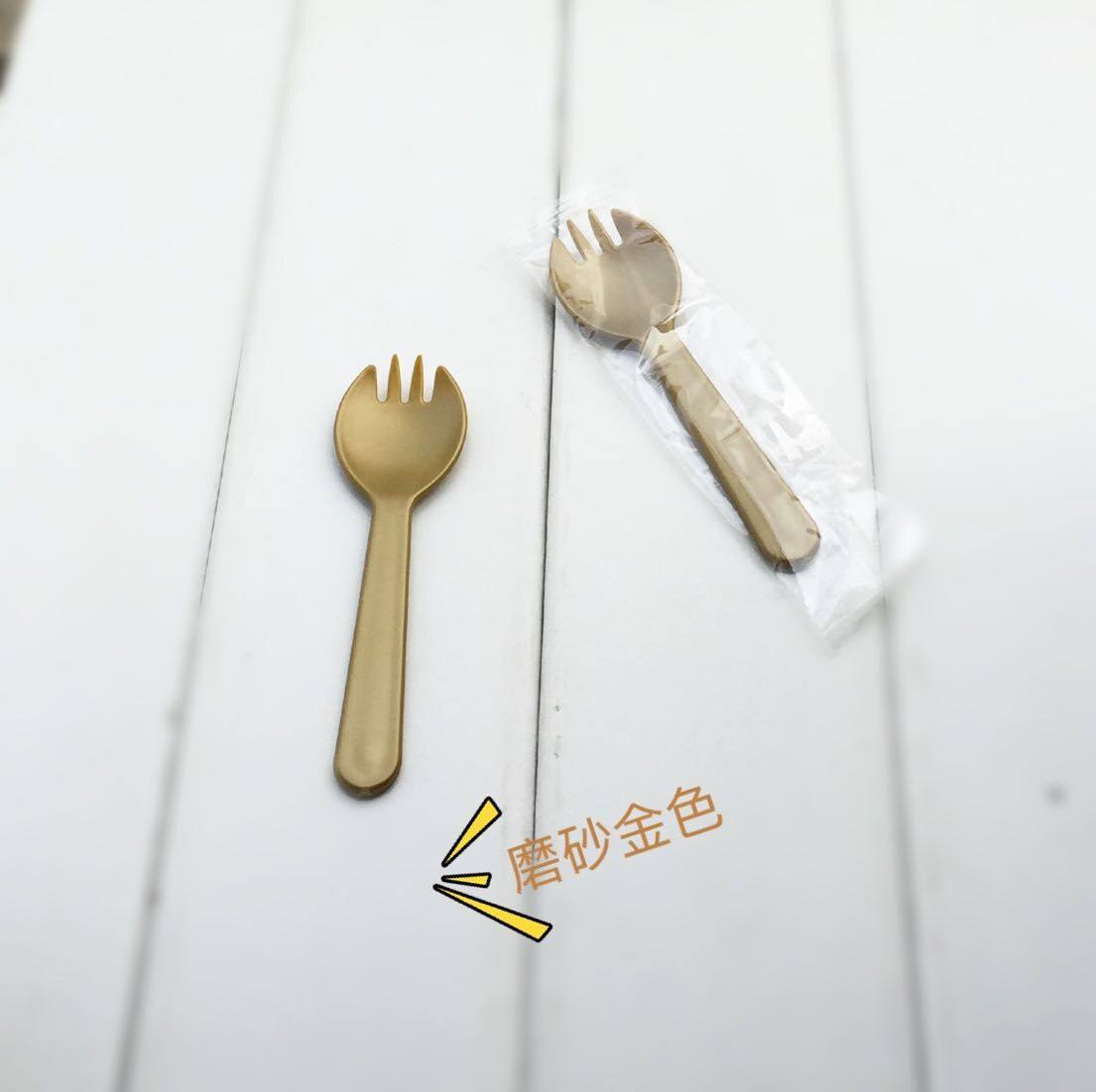 一次性蛋糕叉子叉勺三齿叉勺水果叉7色特厚磨砂款100支独立包装 - 坤哥塑业
