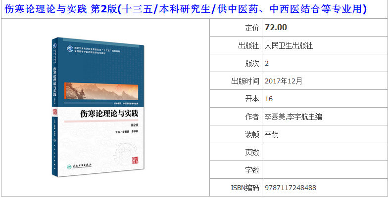 您的位置:女淘日记  >  文体  >  正版 伤寒论理论与实践 第2版二版十三五规划教材 本科研究生/供中医药、中西医结合等专业用)李赛美 李宇航主编 人民卫生出版社
