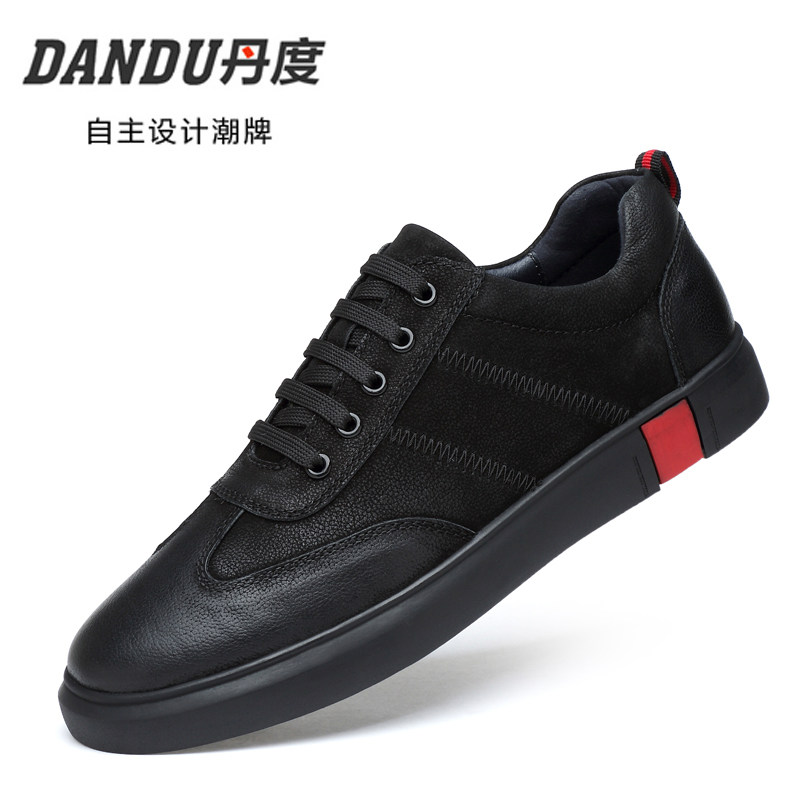 春季真皮板鞋男韩版小码休闲皮鞋青少年百搭鞋子黑色潮鞋大码男鞋 - 丹度男鞋