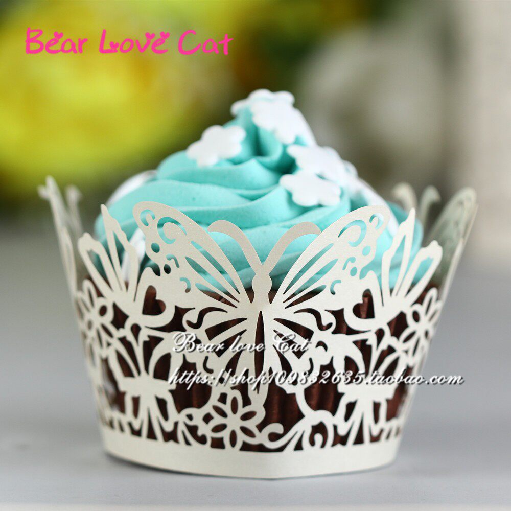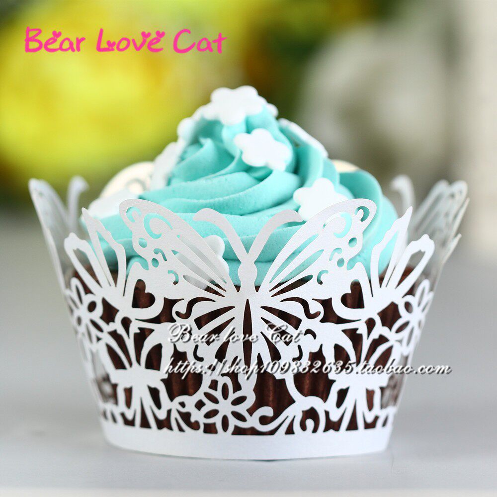精美甜品台艺术纸杯蛋糕围边 浪漫婚礼镂空蝴蝶蛋糕围边装饰50片 - Bear love Cat