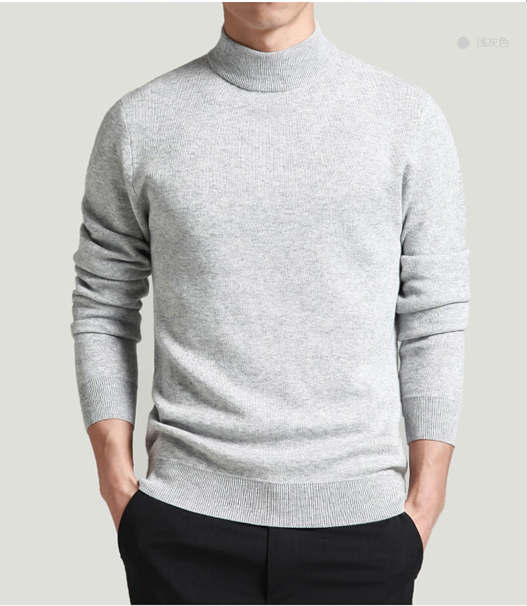 秋冬款男士半高领毛衣打底衫套头针织衫韩版修身青年中领羊毛衫厚 - La Rive店
