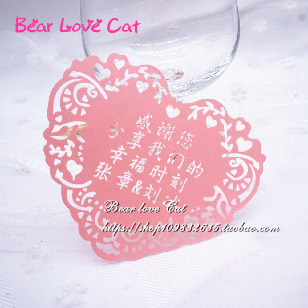 镂空心形空白卡片 爱心形书标签 结婚礼庆桌卡心愿墙许愿祝福50枚 - Bear love Cat