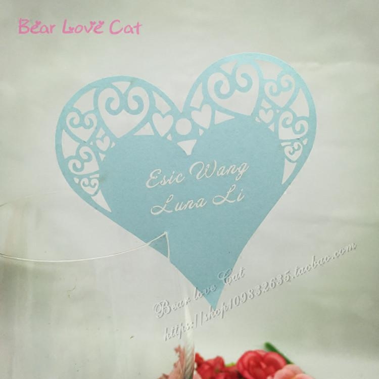出口欧美婚礼精美爱心红酒杯插卡 珠光卡纸 DIY纸卡装饰吊卡50枚