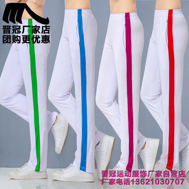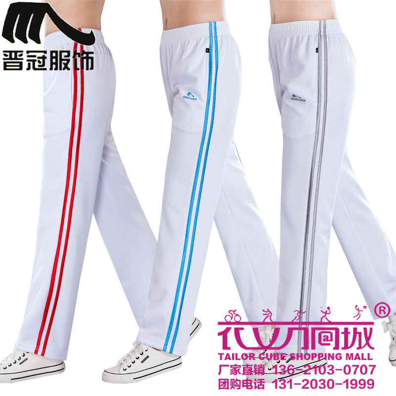 晋冠运动裤男女春秋夏款南韩丝速干透气直筒高腰大码团购白色长裤 - 晋冠运动服官方企业店