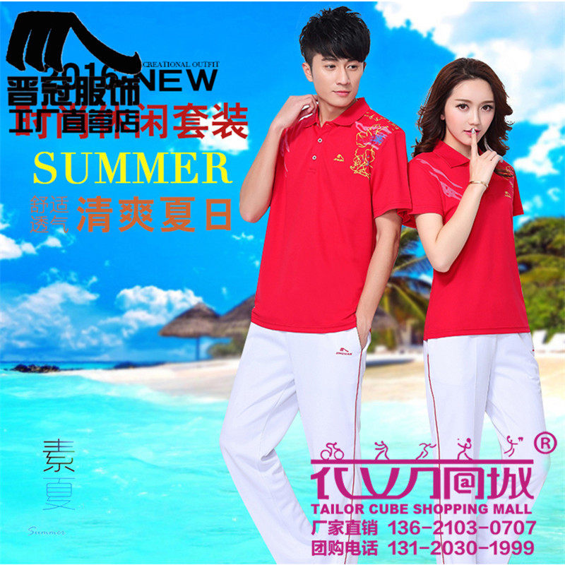 晋冠短袖T恤男女情侣夏透气速干半袖广场舞健身操团体运动服套装 - 晋冠运动服官方企业店