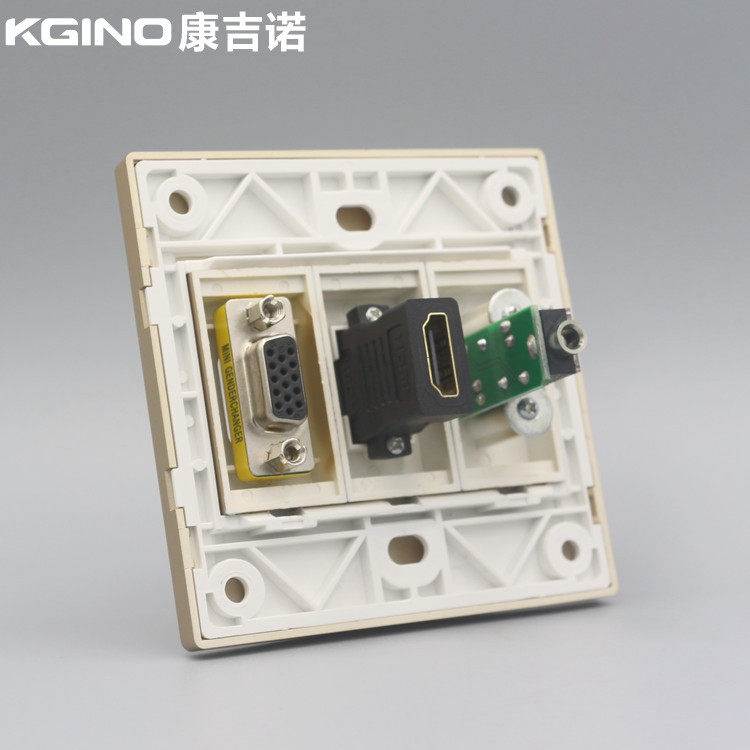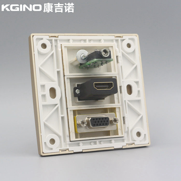 康吉诺香槟金86型VGA高清HDMI耳机直插面板4K多媒体3.5mm音频插座 - 同浩智能中心