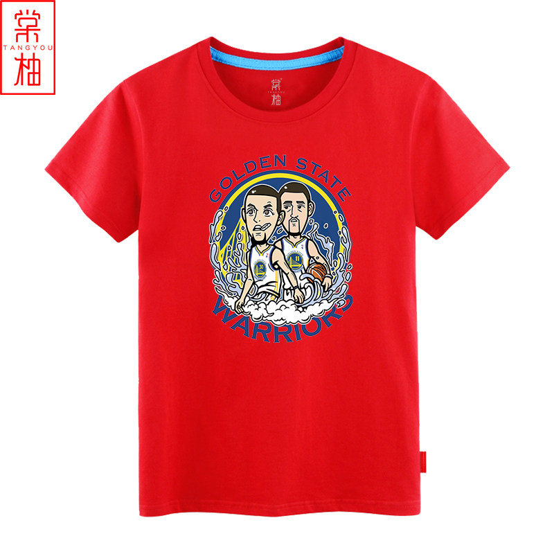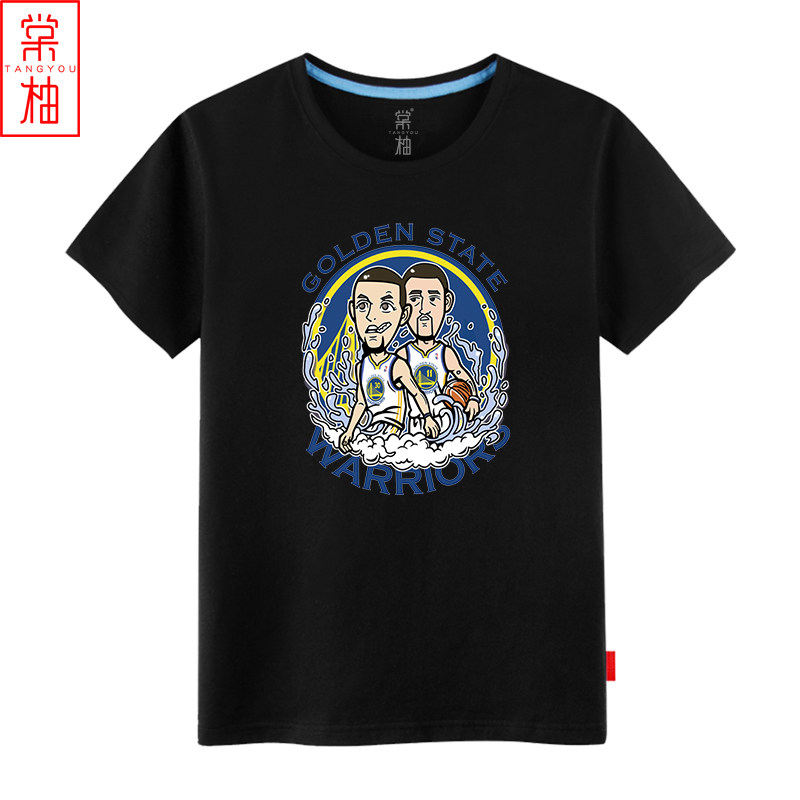 勇士篮球水花兄弟库里t恤汤普森印花短袖纯棉T恤运动球迷服球衣 - 棠柚旗舰店
