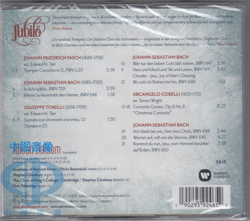 【中图音像】Alison Balsom 巴尔松 欢庆Jubilo 95924652 华纳 - 中图深圳图书专营店