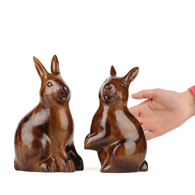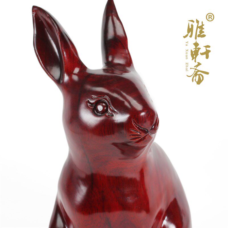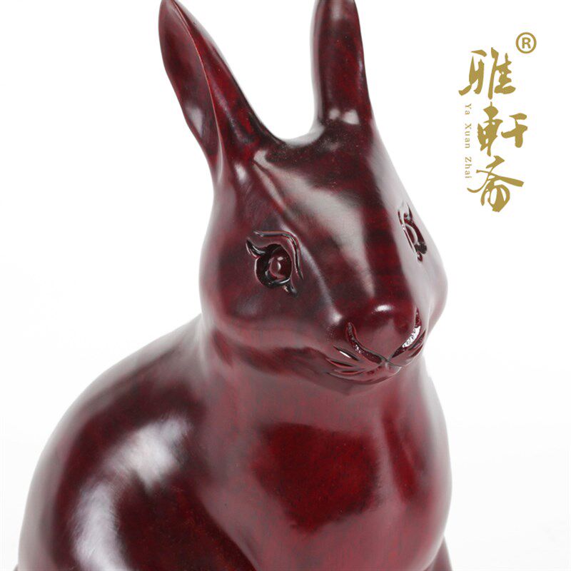 速发雅轩居红木工艺品 家木雕刻兔子东斋玄关摆件 12十二生肖兔 - 和徕商贸
