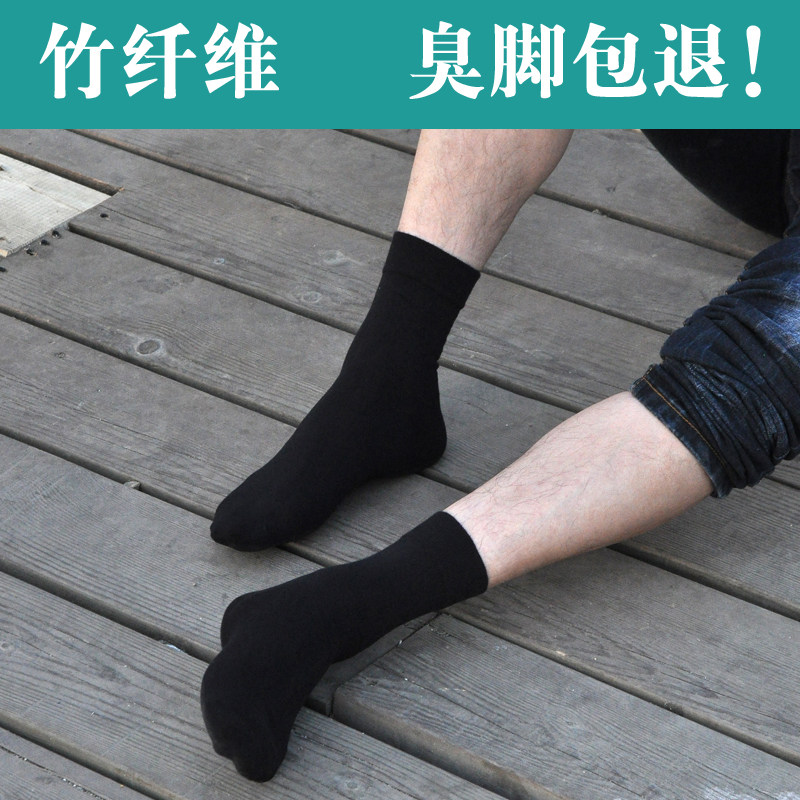 竹炭袜子男防臭竹纤维秋冬厚款中筒男士除臭袜商务长筒纯黑色吸汗