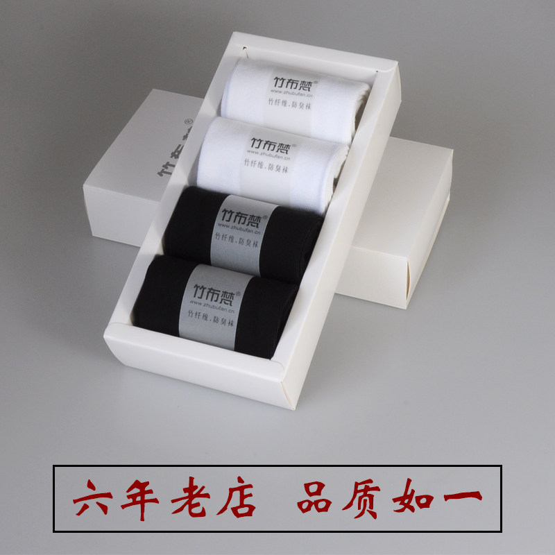 竹炭袜子男防臭竹纤维秋冬厚款中筒男士除臭袜商务长筒纯黑色吸汗 - 竹布梵袜业