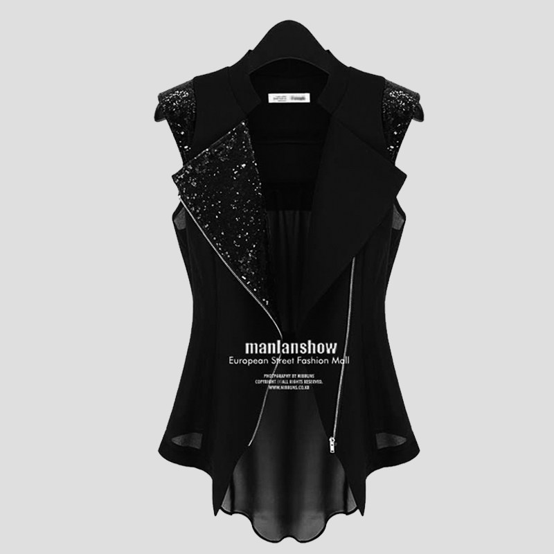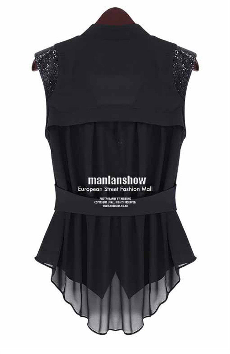 马甲女秋季薄款中长款雪纺开衫西装马夹坎肩胖mm外套大码无袖背心 - 玉人花影精品馆