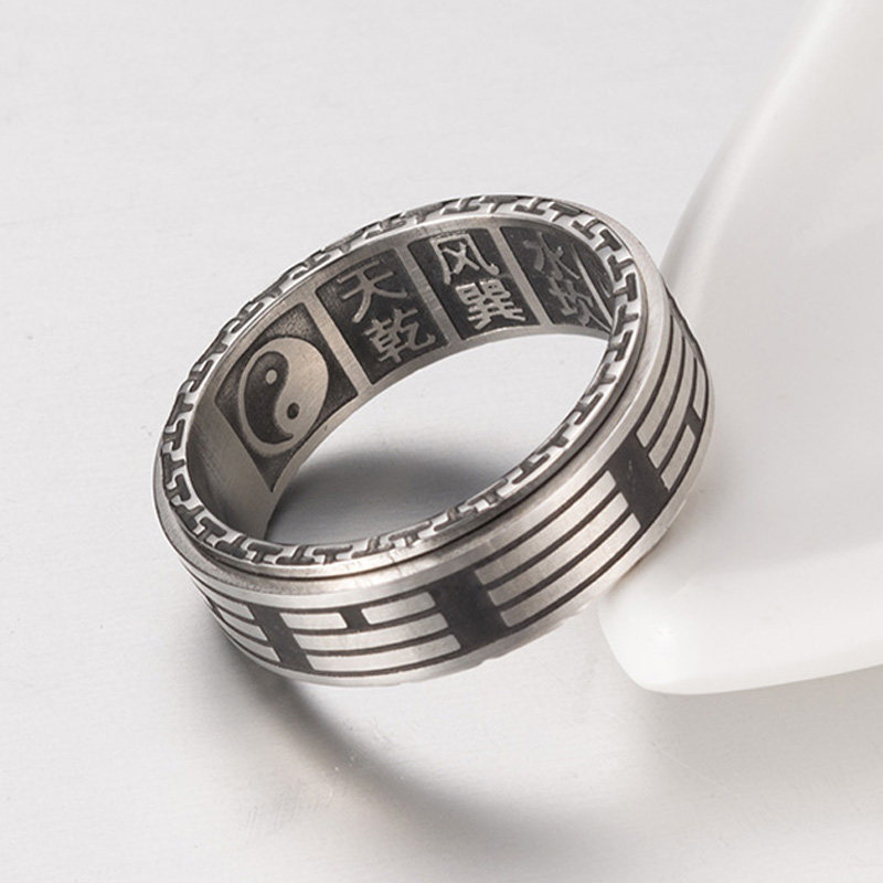 太极八卦戒指男个性霸气复古中国风钛钢尾戒日韩单身潮人转动指环 - 神秘饰界