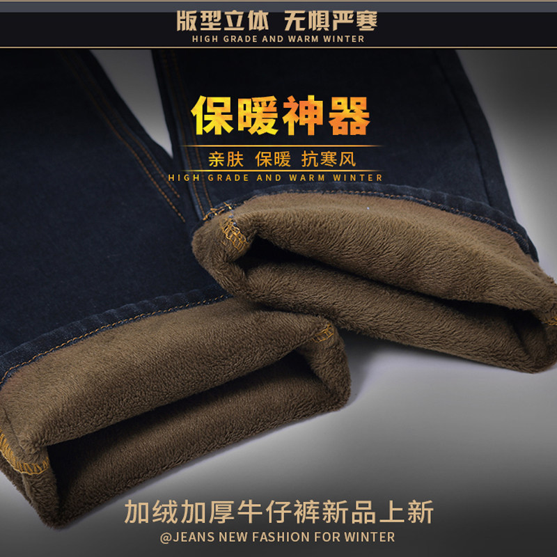 秋冬季黑色弹力牛仔裤男宽松加绒加厚加肥加大码肥佬胖子直筒长裤 - 胖哥哥牛仔裤