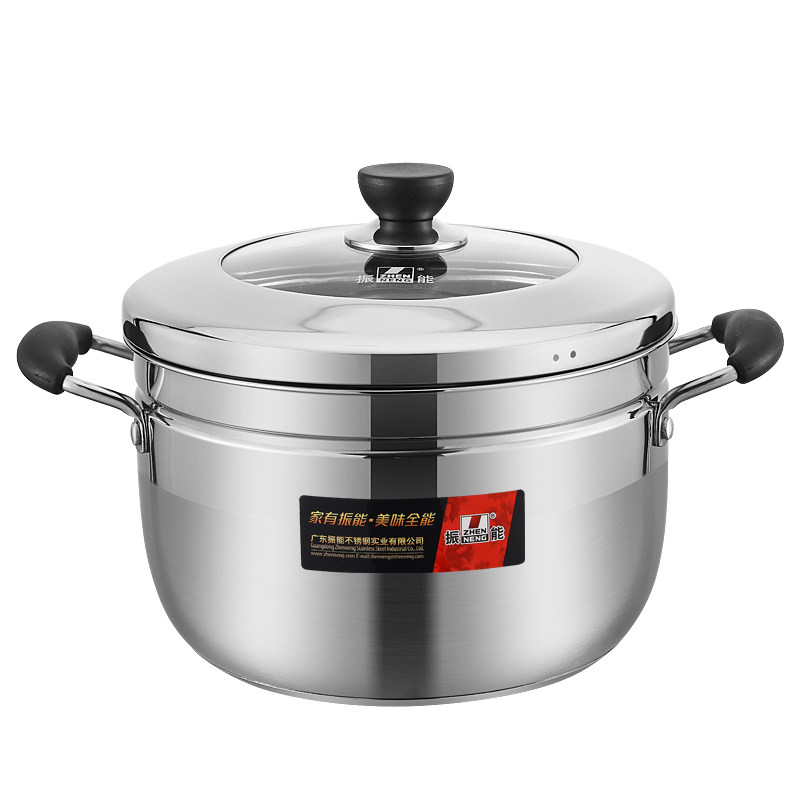 振能 不锈钢汤锅复底加厚蒸锅日式双层煲汤锅电磁通用20 22 24 26 - 振能厨具企业店