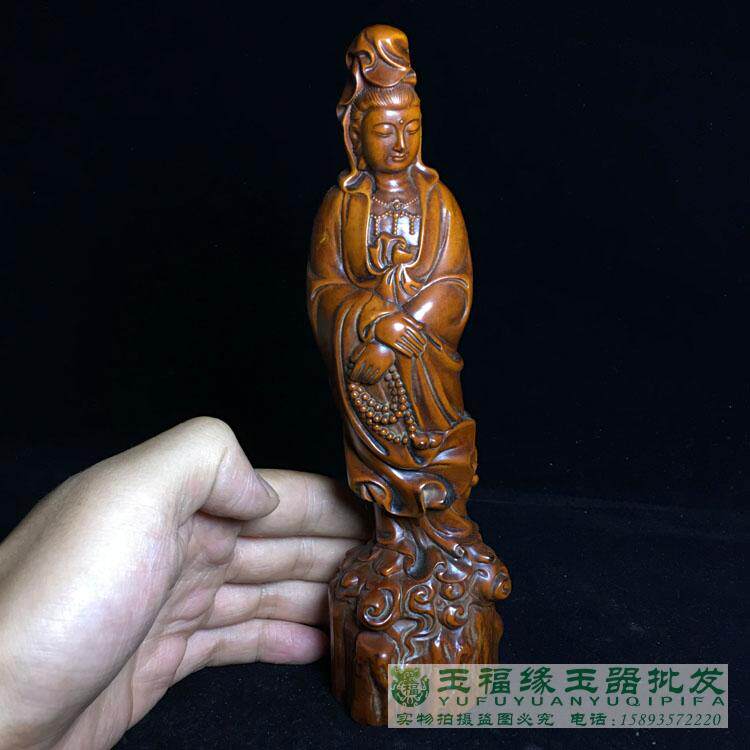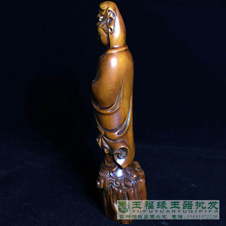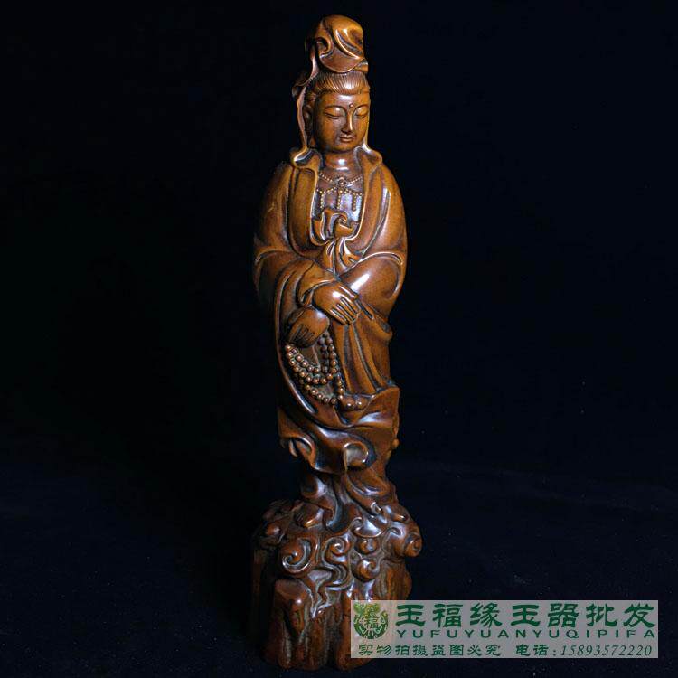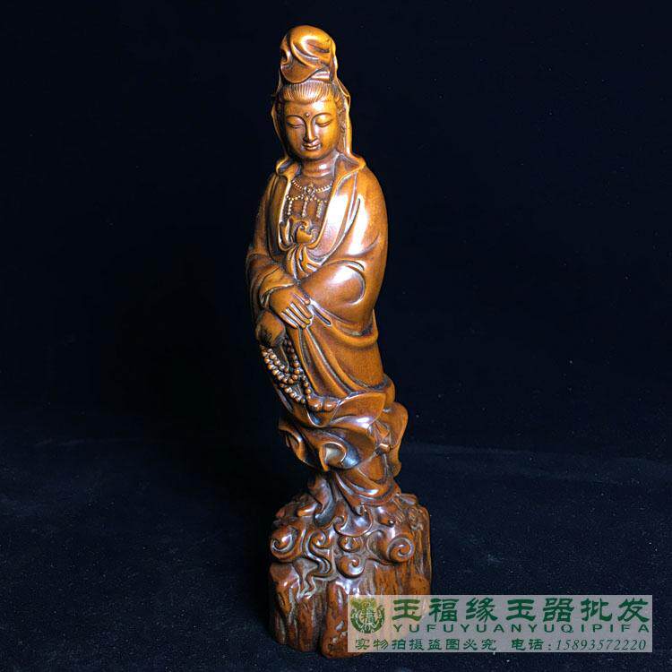 古玩老黄杨木精雕念珠观音菩萨小摆件木雕佛像古玩文玩老木雕件 - 玉福缘珠宝玉器批发