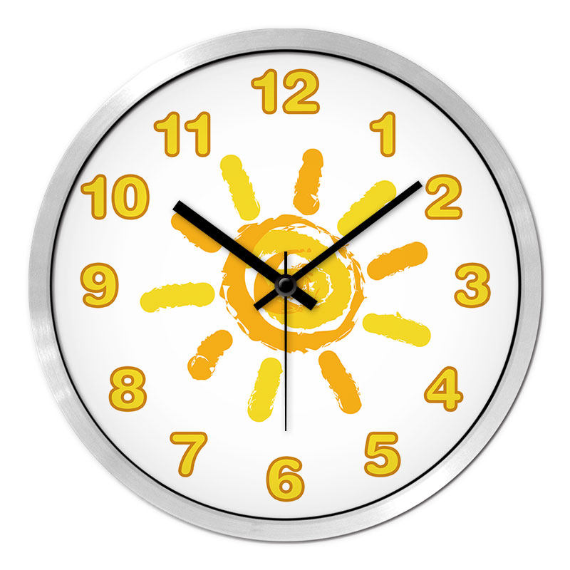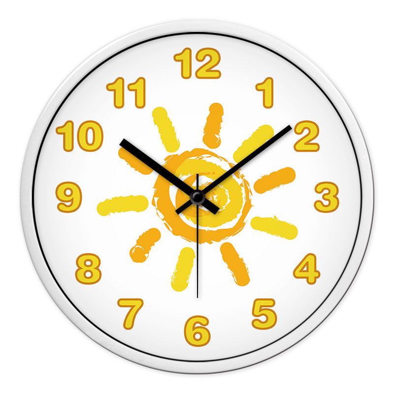 摩门儿童房卧室卡通挂钟静音涂鸦挂表石英钟表黄色太阳教室时钟 - 海陆风潮流精选店
