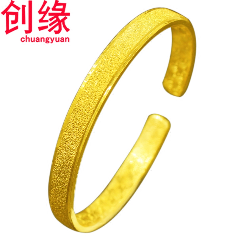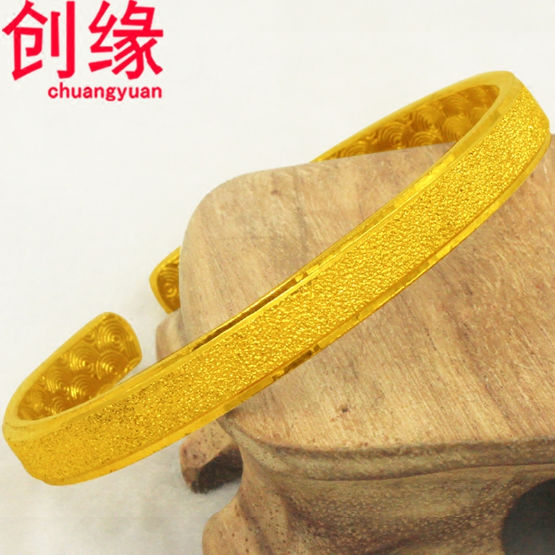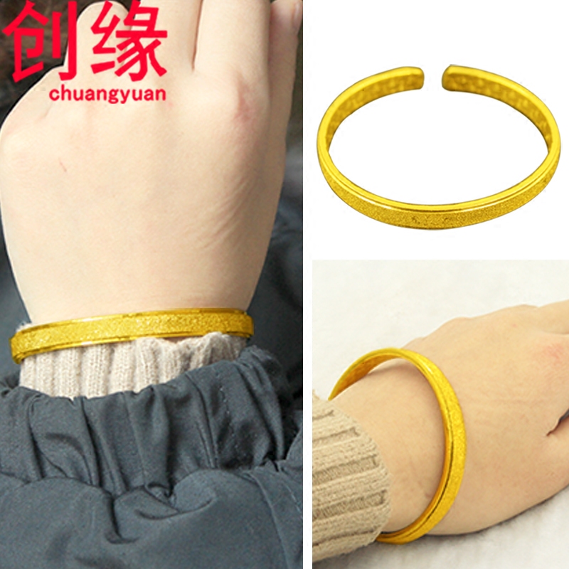 创缘镀黄金手镯女生开口镀沙金手环细手镯新娘婚庆镀金镯子小磨砂 - 创缘饰品
