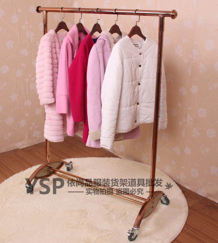 不锈钢服装架挂衣架落地式服装店衣架展示架不锈钢带轮子服装货架 - 依尚品服装道具批发