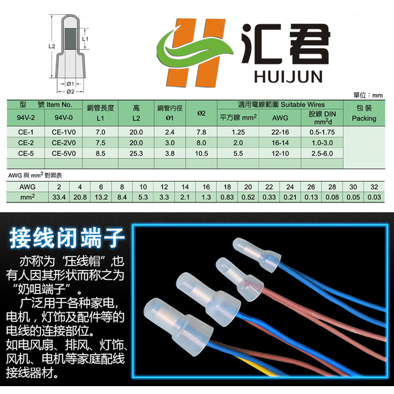 压线帽 闭端子CE-5X奶嘴咀电线快速接线端子头 接线帽 - 汇君