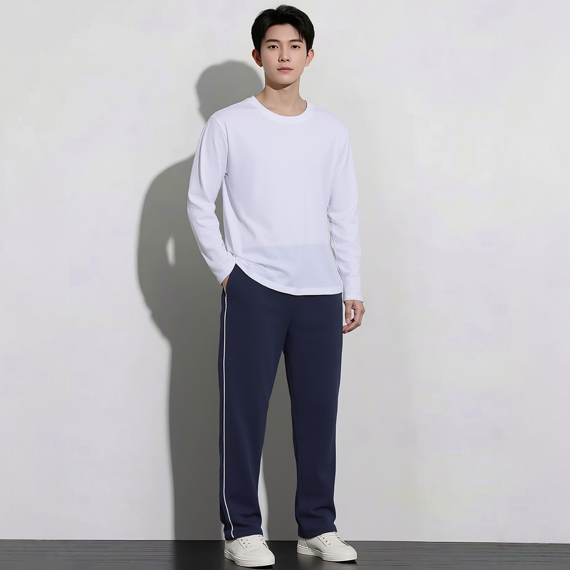 现货夏季超薄藏青色白细边杠学生校裤子小学初高中男女运动长裤 - 校服大全