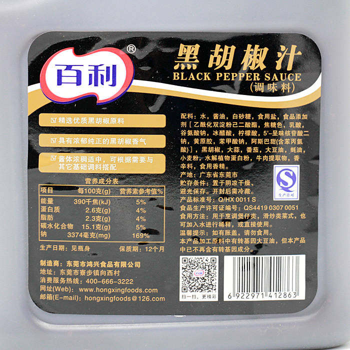 百利黑胡椒汁2.3kg牛排牛柳烧烤调料披萨意面手抓饼酱烤肉拌饭酱 - 时食乐营业店