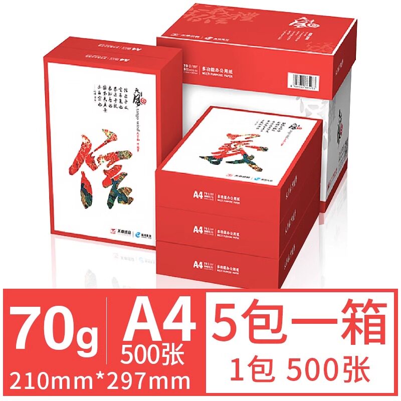 海龙a4纸70g80g克玖龙打印复印纸天章风500张一包整箱装2500张 - 熊掌办公
