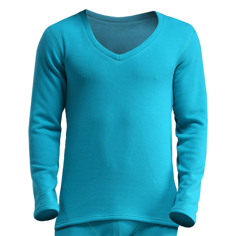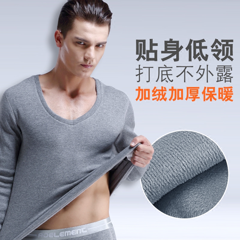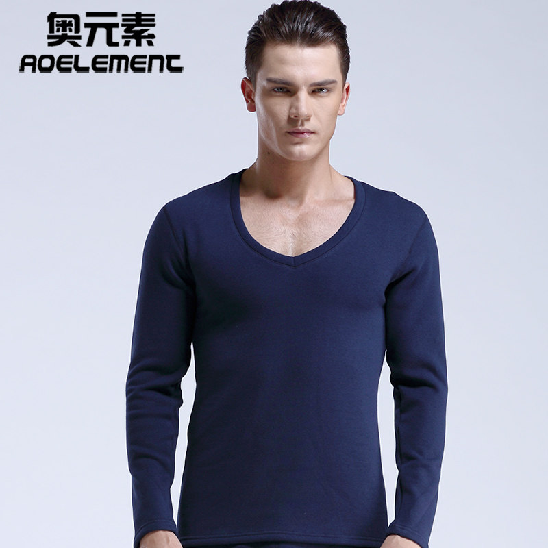 男士保暖内衣上衣单件加厚加绒打底衫大领V领秋衣低领紧身棉毛衫 - 奥元素内衣店