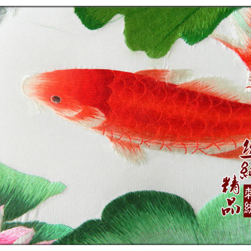 天明刺绣苏绣真丝刺绣成品客厅挂画荷花鲤鱼大幅客厅装饰画鱼福图 - tb5693213510的小店85