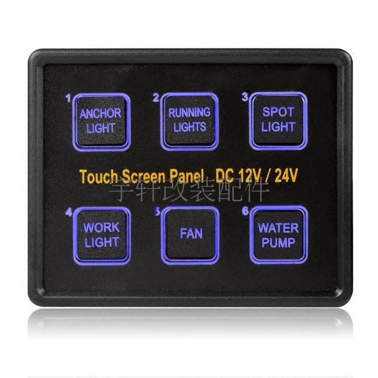 新品房车汽车触屏控摸开关巴士轮船游艇智能控制感应开关6位带灯 - 宇轩汽摩配件工厂直销