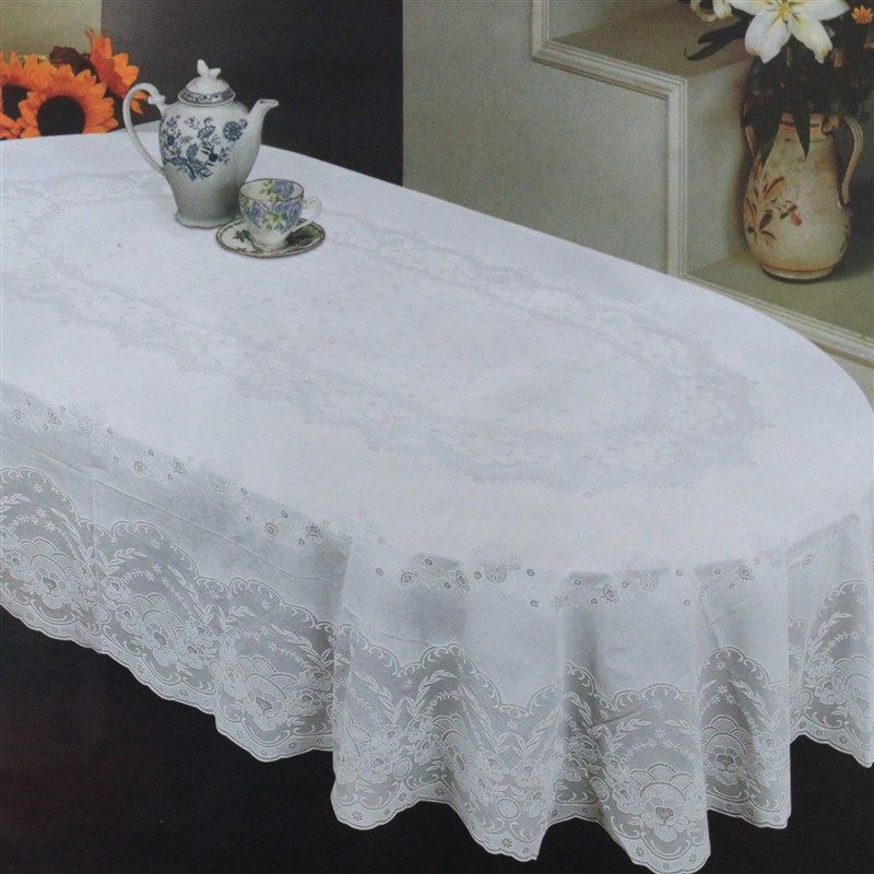 惊爆圆形椭圆形PVC压花桌布薄款防水免洗防油防烫纯白