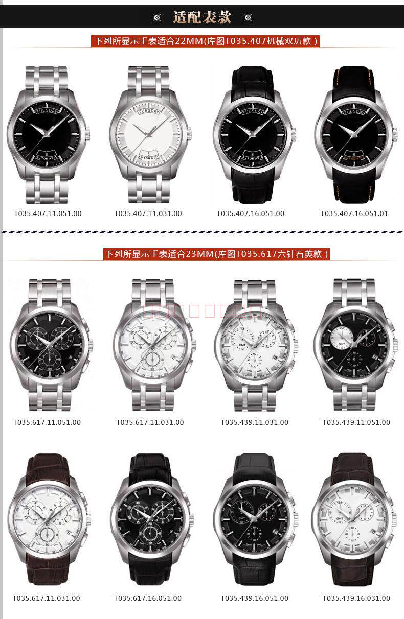 您的位置:女淘日记  >  配饰  >  适配天梭库图表带 T035机械原装男真皮1853表带双按蝴蝶扣22 23mm
